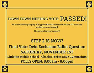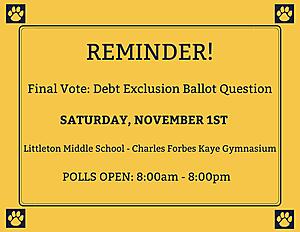 REMINDER! Final Vote: Debt Exclusion Ballot Question SATURDAY, NOVEMBER 1ST Littleto...