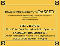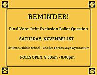 REMINDER! Final Vote: Debt Exclusion Ballot Question SATURDAY, NOVEMBER 1ST Littleto...