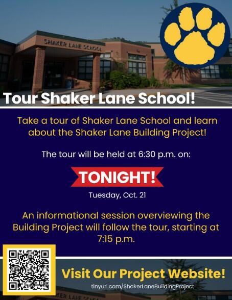 REMINDER! TONIGHT! Come on down to the Shaker Lane School this evening to take part in the final tour before next week’s Special Town Meeting, where voters will decide on a warrant article to approve building a new Shaker Lane School