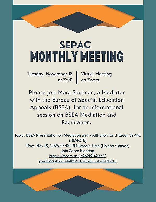 Topic: BSEA Presentation on Mediation and Facilitation for Littleton SEPAC (REMOTE)